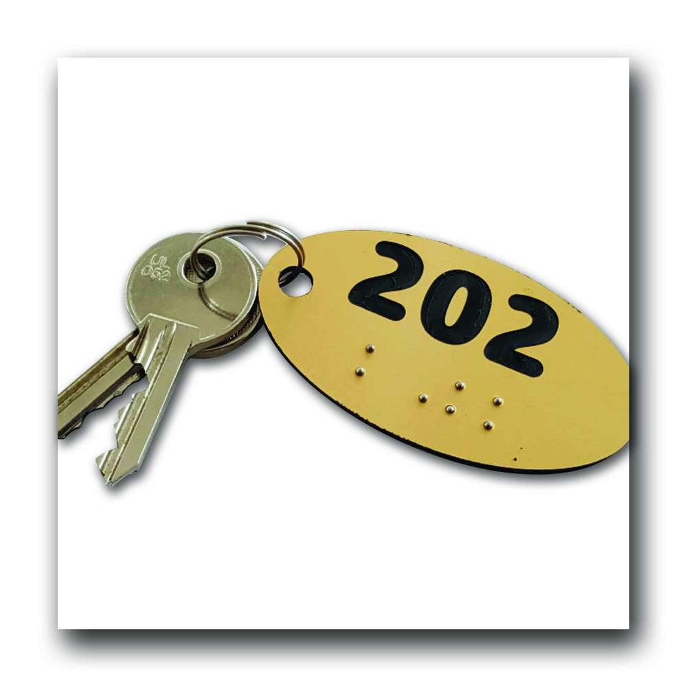 Χρησιμοποιούμε ανθεκτικά υλικά σε διάφορα σχήματα τετράγωνα, οβάλ, στρογγυλά και χρώματα όπως μαύρο, ασημί, χρυσό χαράζοντας επάνω το νούμερο δωματίου σε ανάγλυφη γραφή για άτομα με πρόβλημα όρασης.